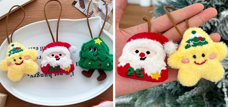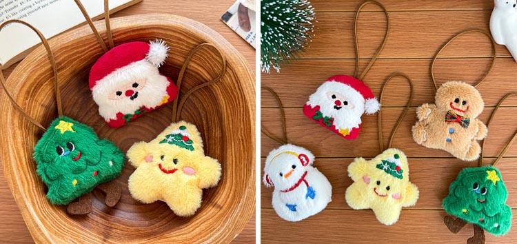 These Christmas key chains are all made of high-quality plush materials, with a soft and comfortable texture, bright colors that don't fade easily. Each one comes with a genuine leather-like hanging string, making them more upscale. Unlike keychains, they don't tend to oxidize or fade, and can be tied to bags, keys, or Christmas trees as a small decoration.