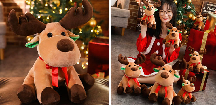 The reindeer plush toys come in three sizes: 25 cm, 35 cm, and 45 cm. This makes it highly practical and decorative, allowing for easy selection based on your needs. The smaller ones can be used to decorate cars and Christmas trees. The larger ones can be placed on the bedside of a room, on a sofa or bookshelf, and can also be given as a Christmas gift to friends.