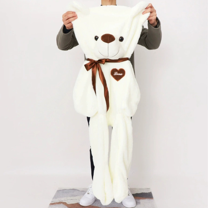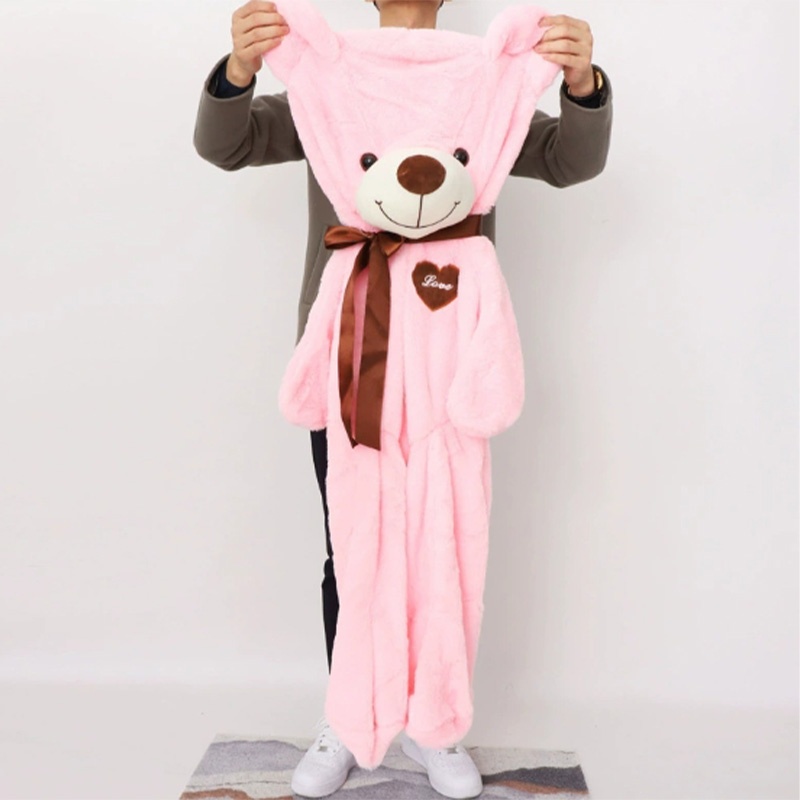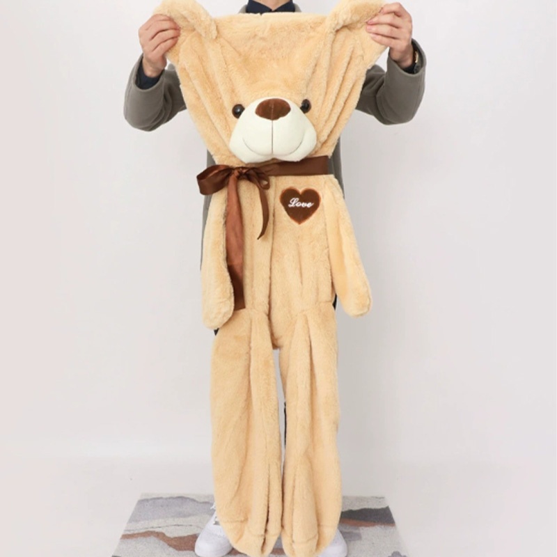 This is a large-sized plush toy bear. It comes in seven sizes: 60cm, 80cm, 100cm, 120cm, 140cm, 160cm, and 180cm. If it is properly filled, the volume will be very large, and this will result in a considerable transportation cost. So this plush toy skin bear is very popular among everyone.